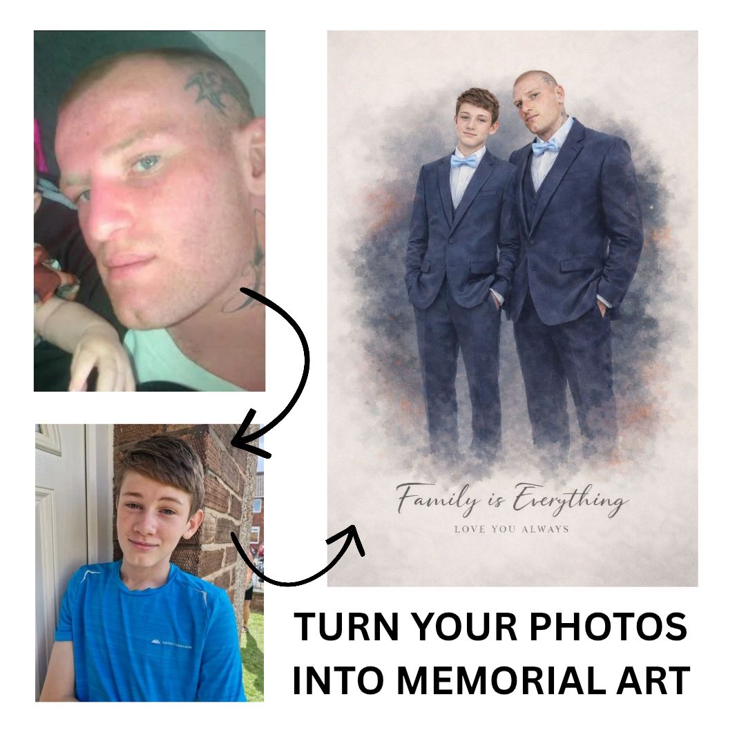 Memorial artwork is created with sensitivity and respect, transforming a cherished photograph into a timeless piece that celebrates life, love, and remembrance. Each artwork is designed to provide comfort and serve as a lasting tribute to those who will always be remembered.
