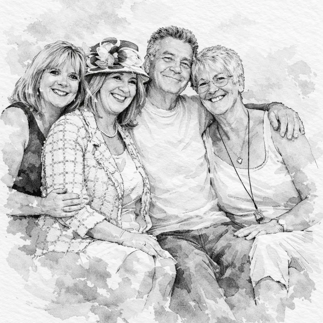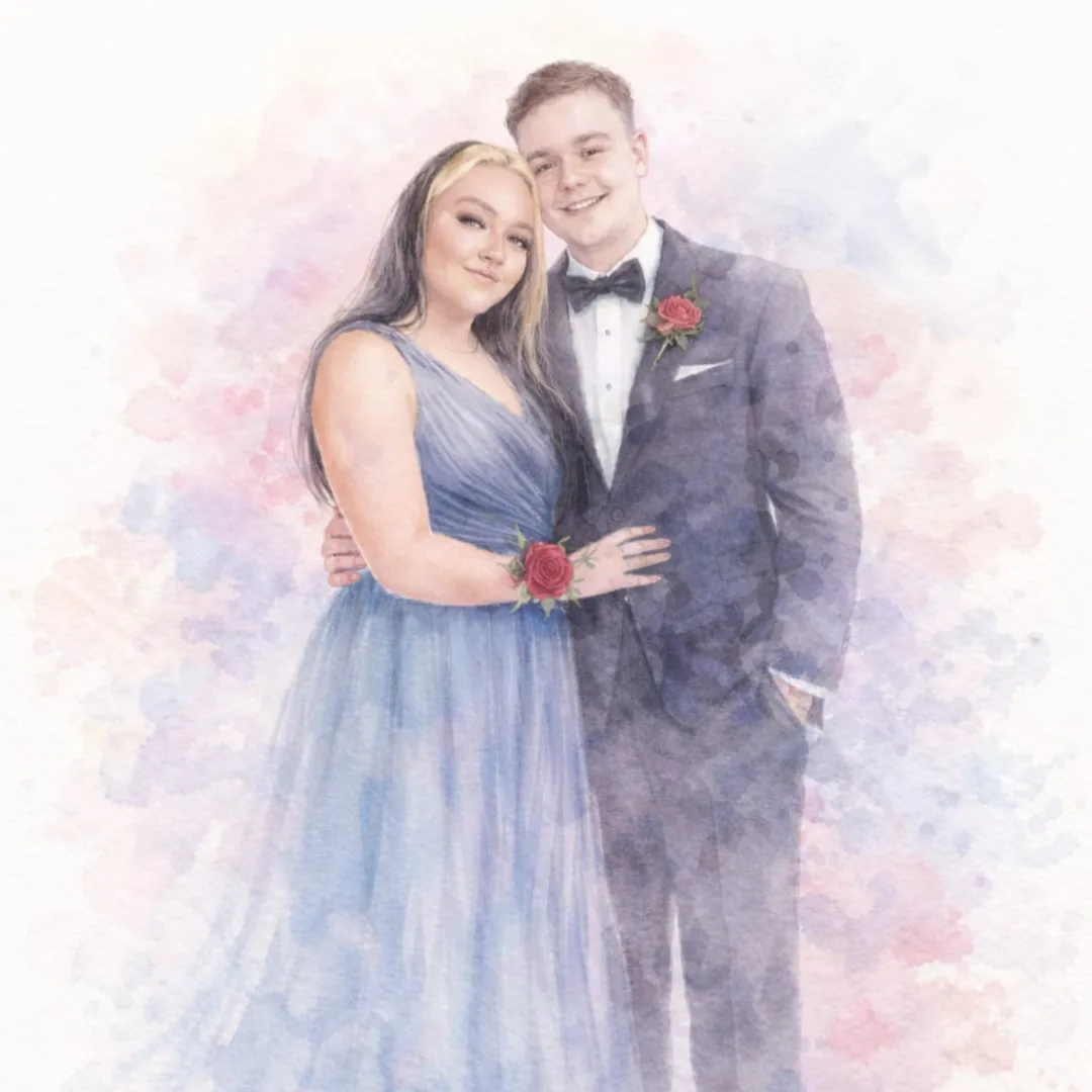 We carefully transform photographs of all kinds into personalised artwork, including photo restorations, image merges, memorial pieces, and artistic portraits such as watercolor-style art.